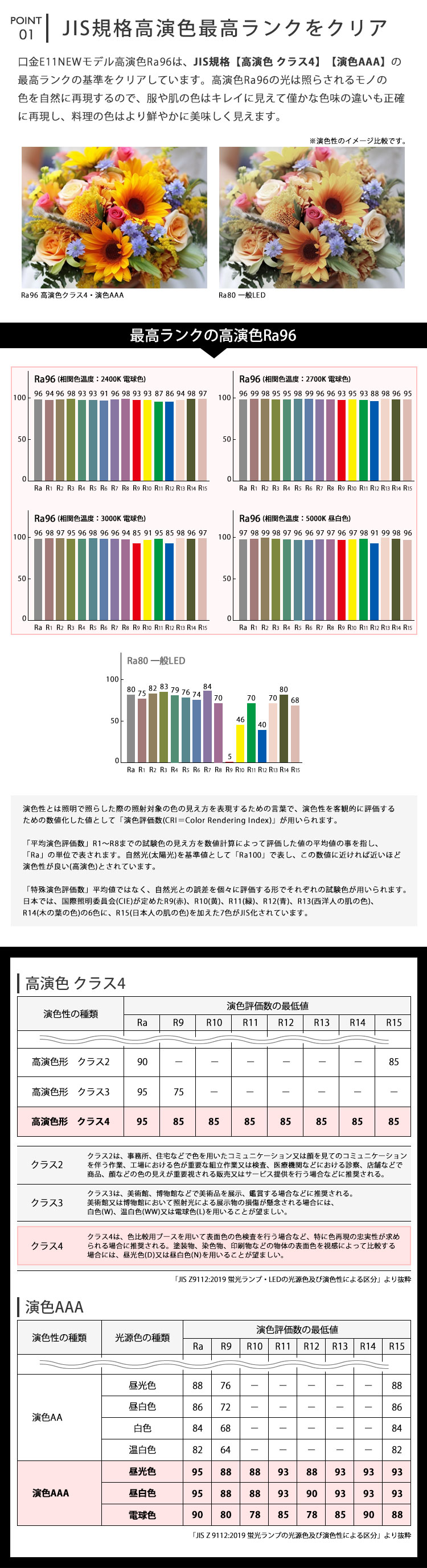 【POINT1】JIS規格「高演色 クラス4」「演色AAA」の最高ランクをクリアしました。